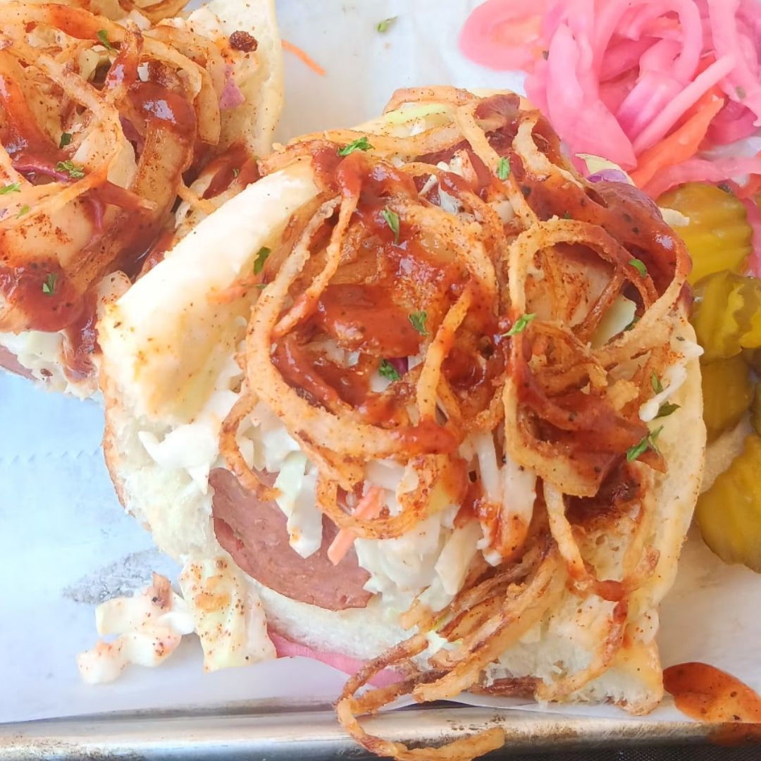 Served with Fried Onions, and dressed with Hoodidya BBQ Sauce